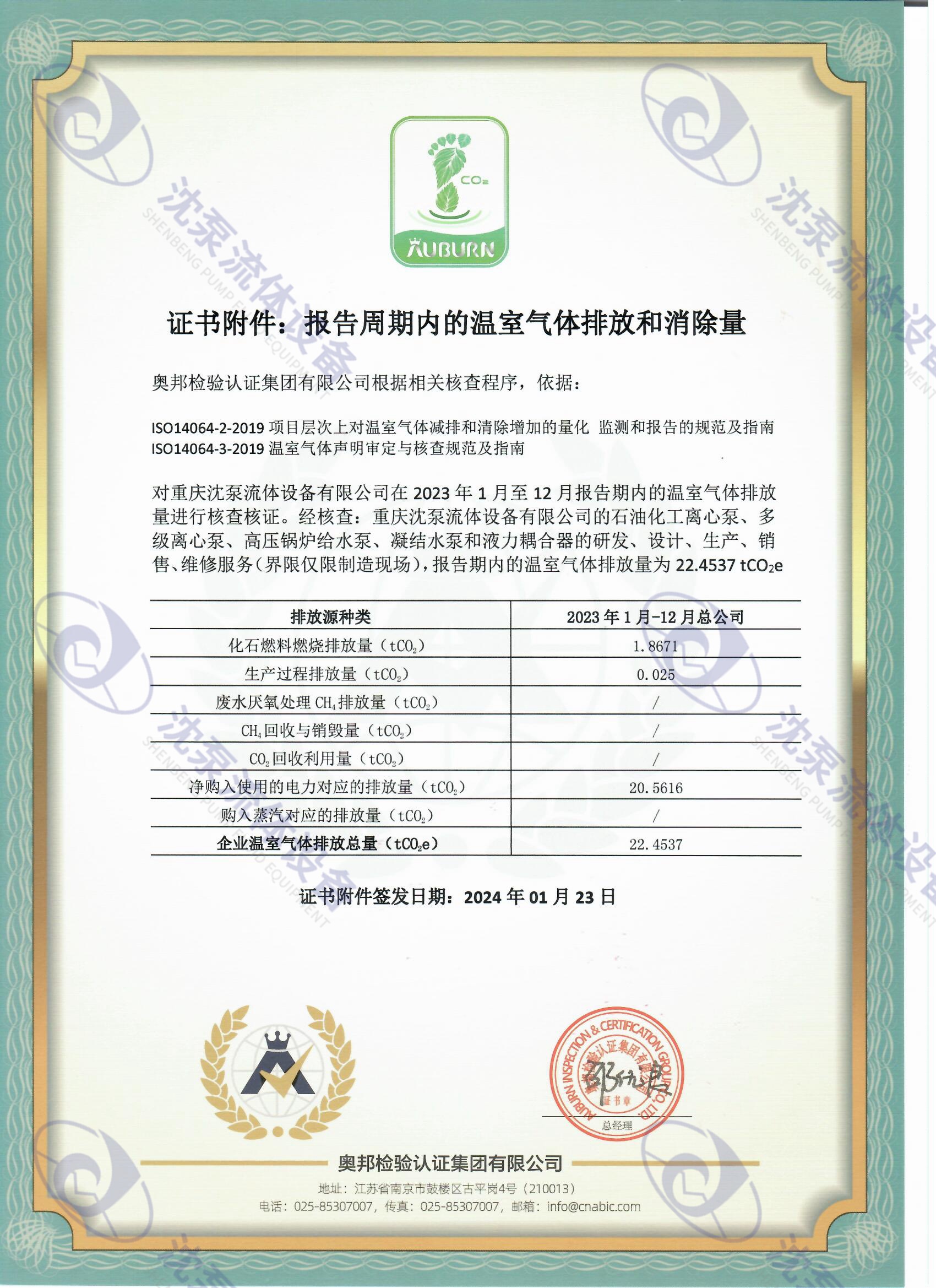 碳排放證書附件(英文)