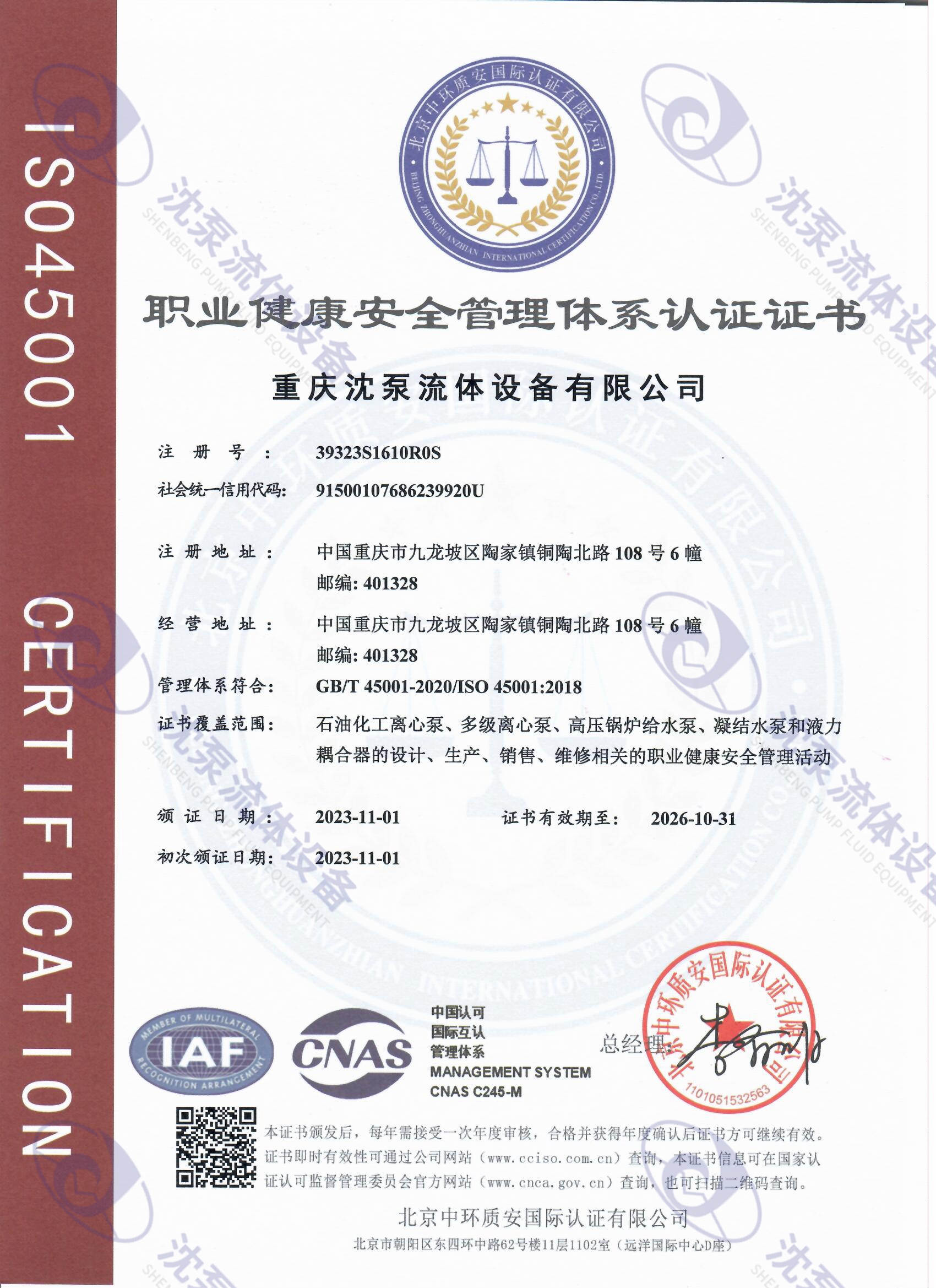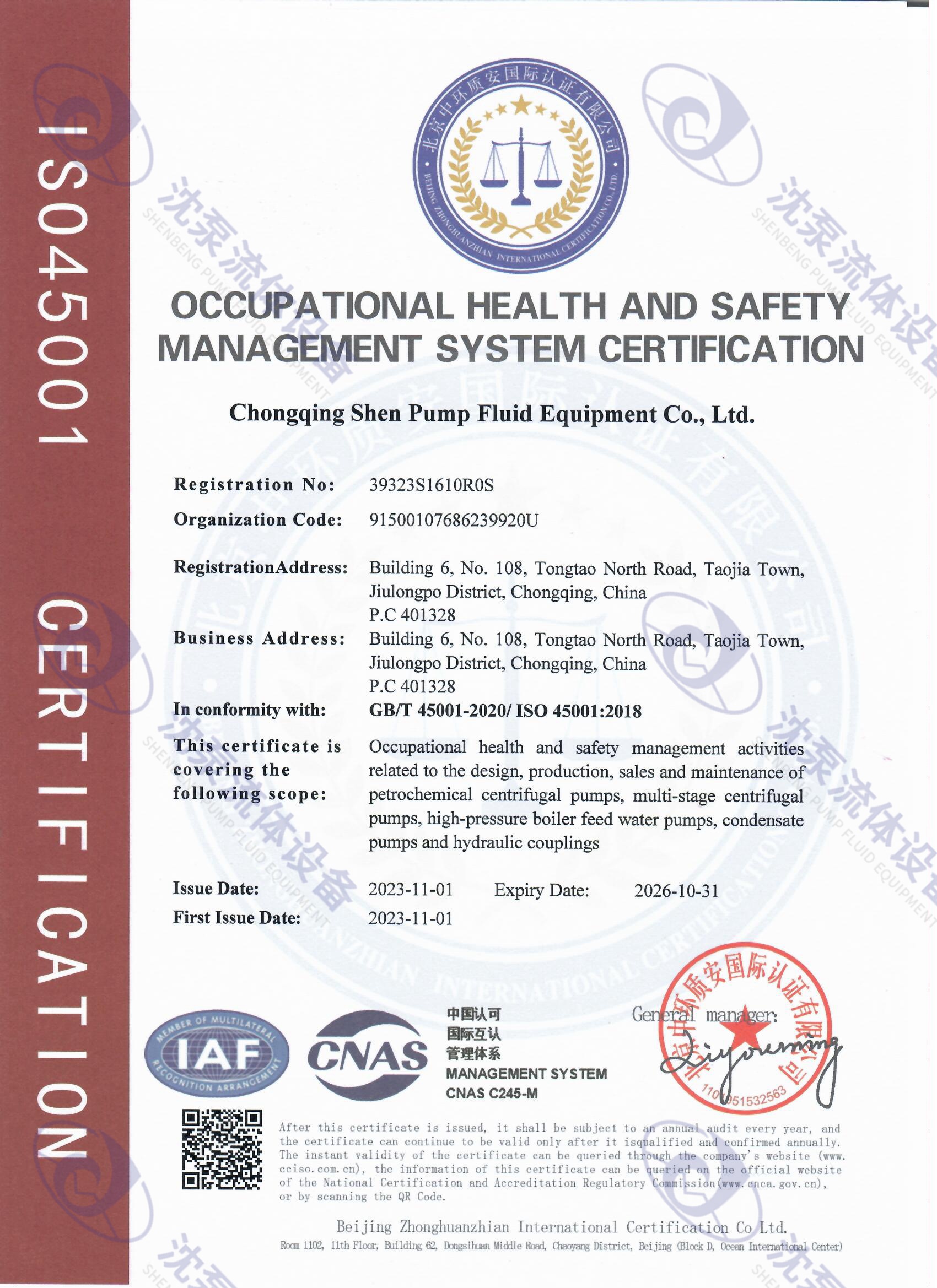 ISO45001職業(yè)健康安全管理體系認證(中文)